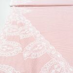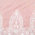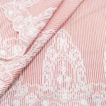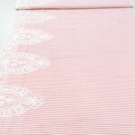 Dünne, garngefärbte Baumwolle mit rot weissen Querstreifen (2/4 mm) und einer 20 cm grossen, weissen Stickbordüre auf beiden Webkanten. Ein besonderer Stoff für Blusen oder Röcke, bei dem die Bordüre direkt als schöner Saumabschluss verwendet werden kann.
