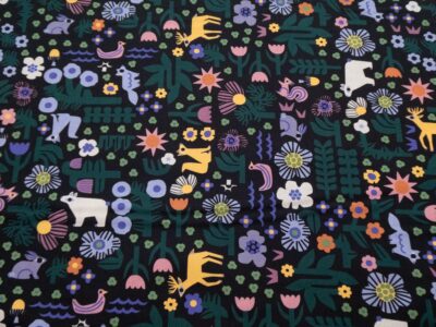 Hochwertiger, elastischer und dünner, schwarzer Baumwolljersey mit Dinomuster von Hilco. Durch den 5% Elasthananteil ist der Stoff besonders formstabil und beult auch bei häufigem Tragen nicht aus.