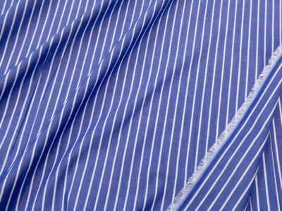 Ein leichter Baumwollpopeline, garngefärbt, mit feinen blau weissen Längsstreifen von etwa 2 mm Breite. Das klassische Streifenbild verleiht dem Stoff eine zeitlose und frische Ausstrahlung.