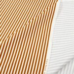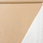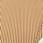 Mittelschwere Gabardine in Weiss mit rostbraunen-weissen Längsstreifen (0.5cm breit) – bedruckt und vielseitig einsetzbar. Der Stoff hat eine glatte, kompakte Struktur und eine angenehm griffige Haptik – ideal für sommerliche Projekte. Die Streifen verleihen dem Material einen charmanten Retro-Charakter. Perfekt geeignet für Hosen, leichte Jacken, Röcke sowie Accessoires wie Taschen oder Kissen.
