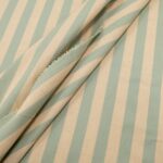 Ein breites Streifenmuster (Längsstreifen 2cm breit) in kreidigem Salbeigrün und zartem Lachsrosa.