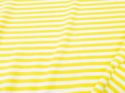 Ein fröhliches Streifenmuster (Längsstreifen 2cm breit) in sandigem Gelb und gelblichem Weiss.