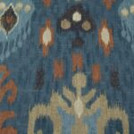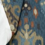 Dieser mittelschwere Baumwollstoff besticht durch ein ikatähnliches Muster in edler Grünblau-Braun-Kombination– ein eleganter Look für moderne wie klassische Wohnkonzepte.