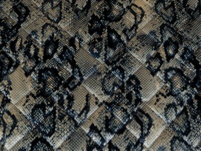 Dicker Denim mit präzise eingepresster Krokodilprägung, die dem Stoff eine markante, formgebende Steifheit verleiht. Ein exklusiver Statement-Stoff mit hochwertigem Griff, perfekt für Taschen und besondere Accessoires.