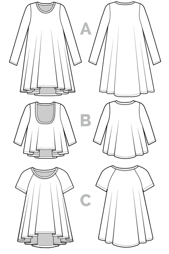 Die Ebony ist ein elegantes Basic mit fliessender Silhouette. Genau richtig für deinen Alltag und darüber hinaus. Du kannst wählen zwischen einem Kleid, einem modernen Crop-Tee oder einer längeren Tunika-Variante. Die unterschiedlichen Längen und Ausschnittoptionen machen das Schnittmuster extrem wandelbar und alltagstauglich.