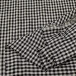 Ein schwarzes und haferfarbenes Gingham-Karo (6mm), eine kleinere Variante des Mrs. Lewes Leinen. Dieses Leinen wird in kleinen Chargen in Osteuropa gefertigt, wo das Spinnen und Weben von Leinen eine lange Tradition hat.