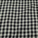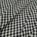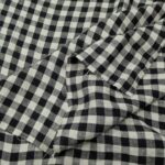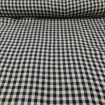 Europäisches, vorgewaschenes Leinen mit Schwarz-naturfarbenes Gingham-Karo (12mm), in der Weberei getumbelt für eine besonders weiche Haptik. Das Leinen ist garngefärbt, das bedeutet, die Garne werden vor dem Weben eingefärbt.