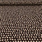 Dünner elastischer Viskosejersey mit weichem, fliessendem Fall, ideal für Kleidung mit Faltenwurf wie zum Beispiel Shirts mit Wasserfallkragen. Das einfache Punkte Kreise Muster auf schwarzem Hintergrund ist vielseitig einsetzbar, lässt sich gut kombinieren und sorgt für einen modernen, dennoch zeitlosen Look. Der Stoff trägt sich angenehm auf der Haut und eignet sich perfekt für bequeme, alltagstaugliche Kleidung.