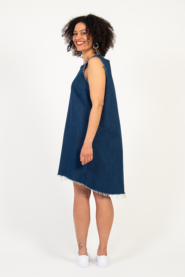 AURA ist ein sehr vielseitiger Schnitt, der dir gleich drei luftige Modelle bietet: ein feminines Top, ein kurzes oder ein langes Kleid. Alle Varianten zeichnen sich durch einen leicht ausgestellten Schnitt in A-Linie aus, der am Saum hinten etwas länger (Vokuhila-Style) ist. Die hübsche Rüschenkante am Ausschnitt und der lockere Fall sorgen für einen verspielten, sommerlichen Look, der zu vielen Anlässen passt. Ob lässig mit Sneakers oder schick mit Sandalen.