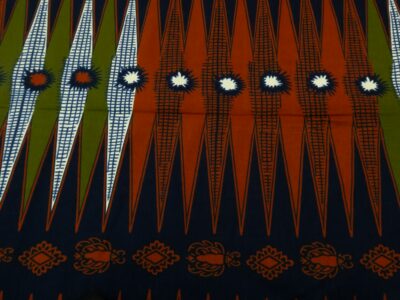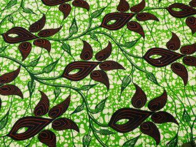 Eine ungewöhnliche südindische Baumwolle mit weichem, seidigem Griff, ähnlich wie Satin. Ein wunderschönes, sattes Olivgrün, das in Handarbeit mit einer indischen Bandhani Technik in Rot und Weiss gefärbt wurde.