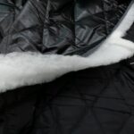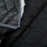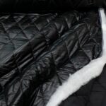 Modischer Stepper mit 2 cm dickem Vlies. Dieser hochwertige Stepper ist warm gefüttert und ideal für Jacken und Mäntel. Die Aussenseite zeigt sich in elegantem Schwarz mit glänzender Oberfläche und klassischem Rautenmuster, das zudem leicht wasserabweisend wirkt. Innen ist der Stoff mit einem matten, schwarzen Futter versehen, das für zusätzlichen Komfort und Stabilität sorgt.