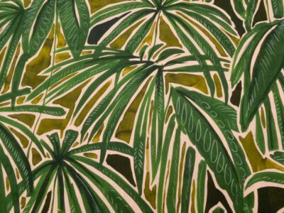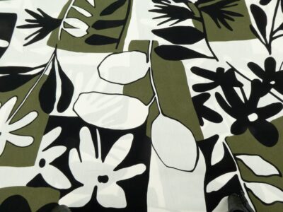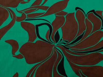 Dünner, eher fester Baumwollpopeline, bedruckt mit einem abstrakten Blumenmuster in einer wunderbaren Farbkombination, die an Sommer und Sonne erinnert.