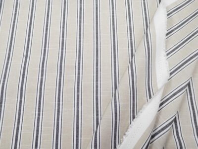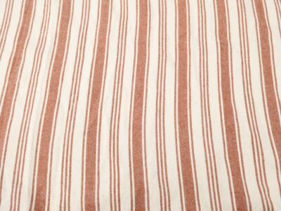 Garngefärbte Querstreifen in Weiss und Rostorange (ca. 1 mm und 5 mm) verleihen dem Material eine klare, zeitlose Optik.
