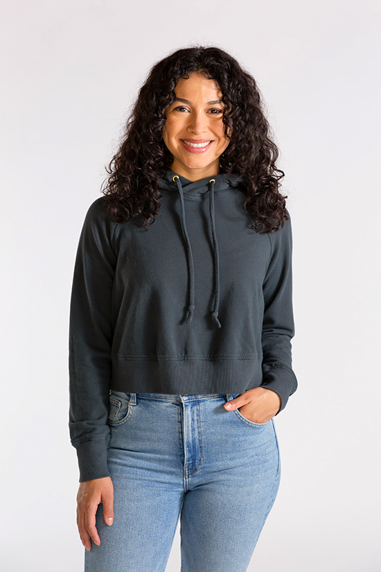 Page ist ein stylischer, kurzer Hoodie mit vielseitigen Optionen: Er bietet zwei Saumvarianten (mit Bündchen oder mit Kordelzug) und drei Ärmelstile, die sich kombinieren lassen. Der Schnitt wirkt lässig und urban, mit klaren Linien und funktionalem Design. Ideal für gemütliche Looks oder Layering im Alltag. Und perfekt, um mit Stofffarben und Kontrasten zu spielen.