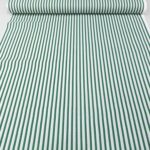 Die klassisch grün-weissen Längsstreifen verleihen dem Stoff eine maritime und zugleich zeitlose Ausstrahlung – perfekt für alle, die schlichte Eleganz und sommerliche Frische schätzen.