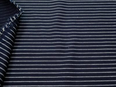 Sehr weicher Wolltwill aus Merinowolle S’110 aus Italien mit klassischem Streifenmuster in Längsrichtung. Die Bezeichnung S’110 steht für die Feinheit der Merinowolle und beschreibt eine hochwertige, feine Garnqualität. Sie sorgt für eine glatte Oberfläche, hohen Tragekomfort und gute Atmungsaktivität bei gleichzeitig sehr guter Stabilität. Das Streifenmuster erinnert an klassische Männeranzüge, wirkt jedoch durch die leicht ins Blaue spielenden Streifen besonders lebendig und verleiht dem Stoff Tiefe und zeitlose Eleganz. Trotz seiner Weichheit bleibt der Griff fest, wodurch sich das Gewebe hervorragend für Anzüge für Frau und Mann eignet.