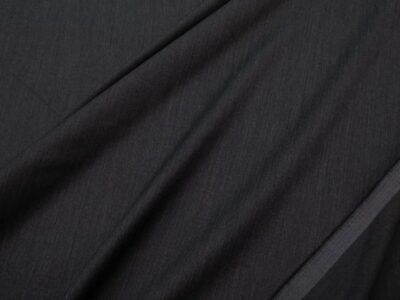 Mittelschwerer, weicher, leicht gerauter Wollgewebe mit noch sichtbarer Köperbindung in einem Grauton mit feinem Rotstich.