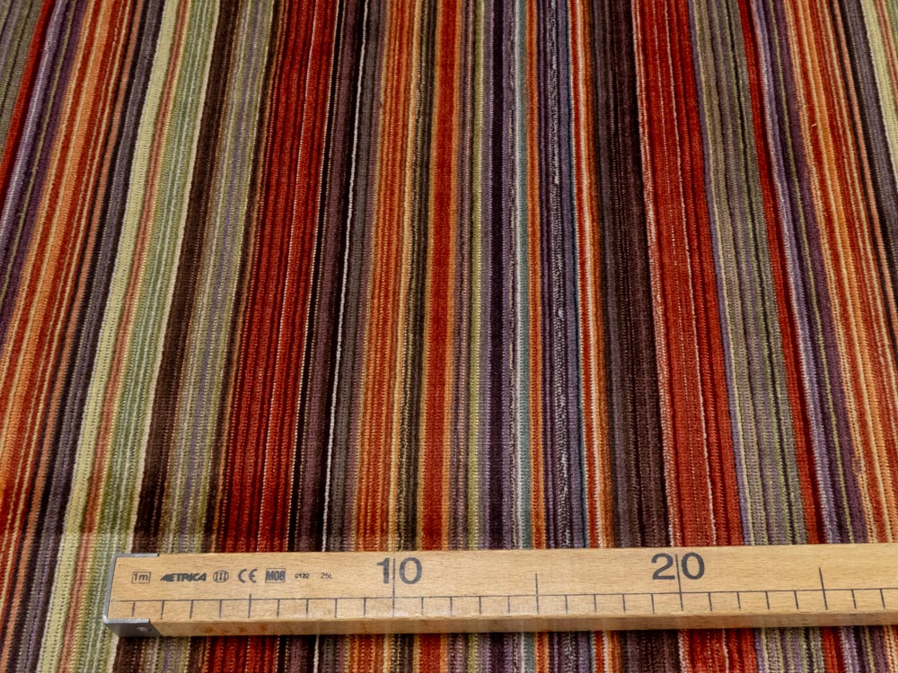 Dicker, robuster und weicher Samtstoff mit feinen Längsstreifen im Stil der 50er Jahre, ideal für Polster.