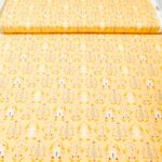 Dünne und feste, glatte, hellorangene Baumwolle mit süssen Weihnachtsmotiven, aus dem Hause ArtGallery, eine sehr gute Qualität, wird weicher durch das Tragen