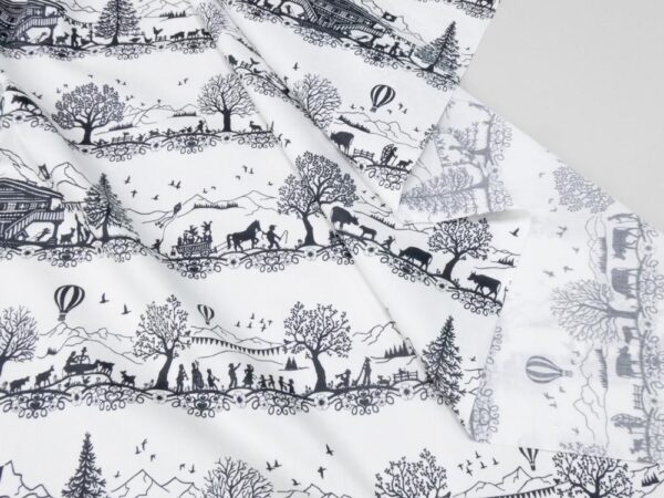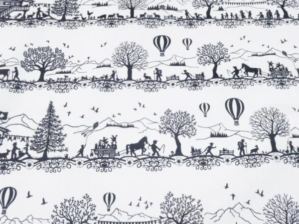 Gewachste, weisse , weiche und dünne Baumwolle mit schwarzem Scherenschnittdruck