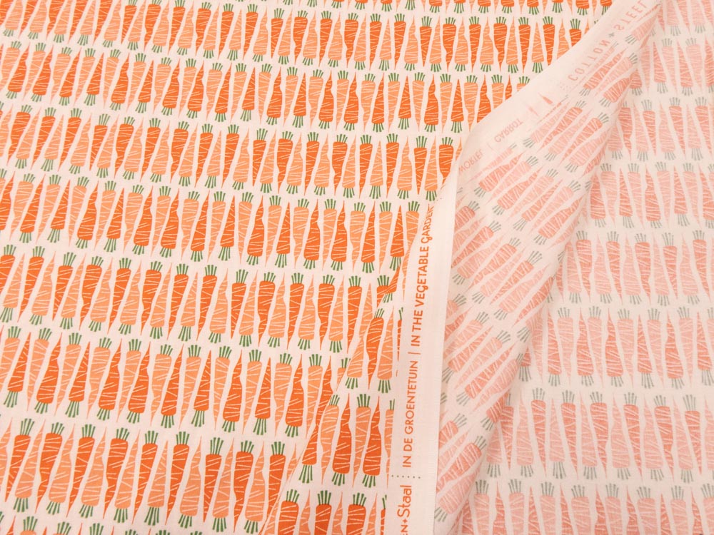 Dünne und weiche, nicht gaz weisse Baumwolle von Cotton + Steel bedruckt mit Karrotten