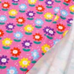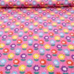 Dünner (200gr/m2), weicher und elastischer, pinkiger Baumwolle Jersey mit Blumenmuster à la Flowerpower