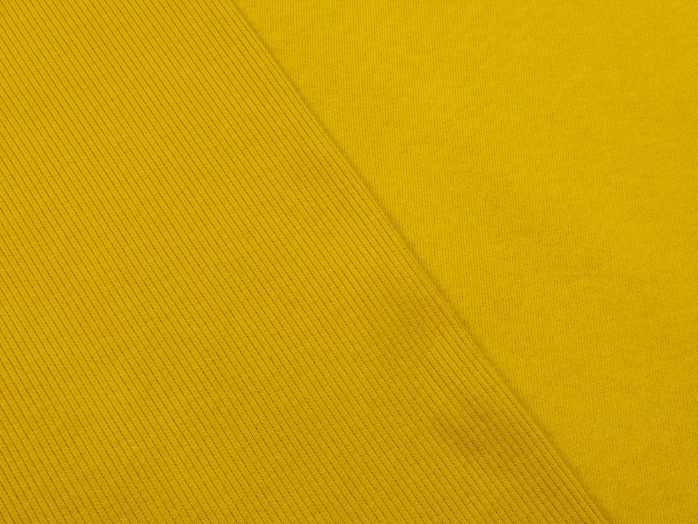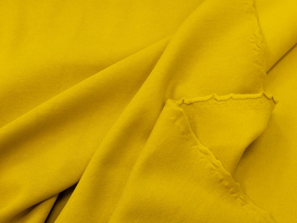 Realtiv schwerer (260 gr/m2) Sweat aus 100 % Bio-Baumwolle (GOTS zertifiziert), der anschmiegsam, weich und flauschig ist (innen aufgerauht).Die Faser kommt aus der Türkei, hergestellt in Portugal. Zu diesem Sweat gibt es das passende Bündchen siehe Artikel Stoff BIO RIB 2×1 Bündchen Golden Yellow.