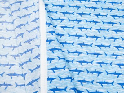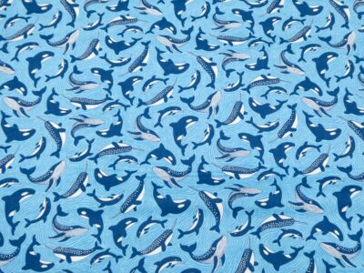 Dünne und feste, türkisblaue Baumwolle mit 5cm grossen Motten