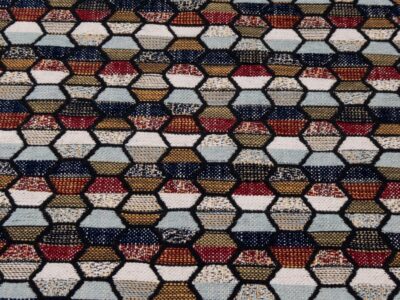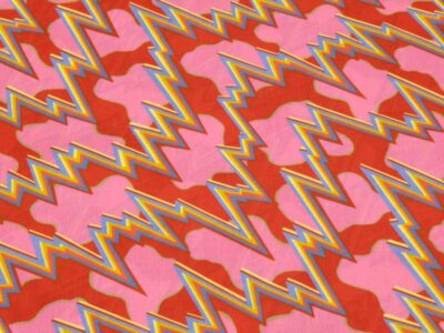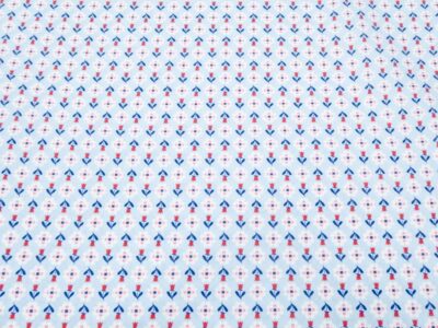 Dünne und feste, rote Baumwolle bedruckt mit farbigen 5mm grossen Dreiecken