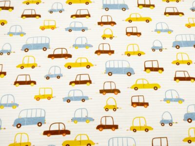 Dünne und feste, hellbeige Baumwolle mit orangebraunen Raketen (16mm) und Sternen