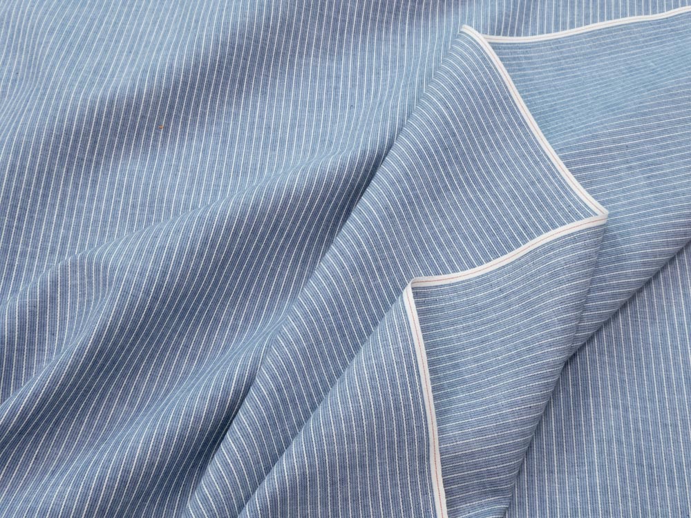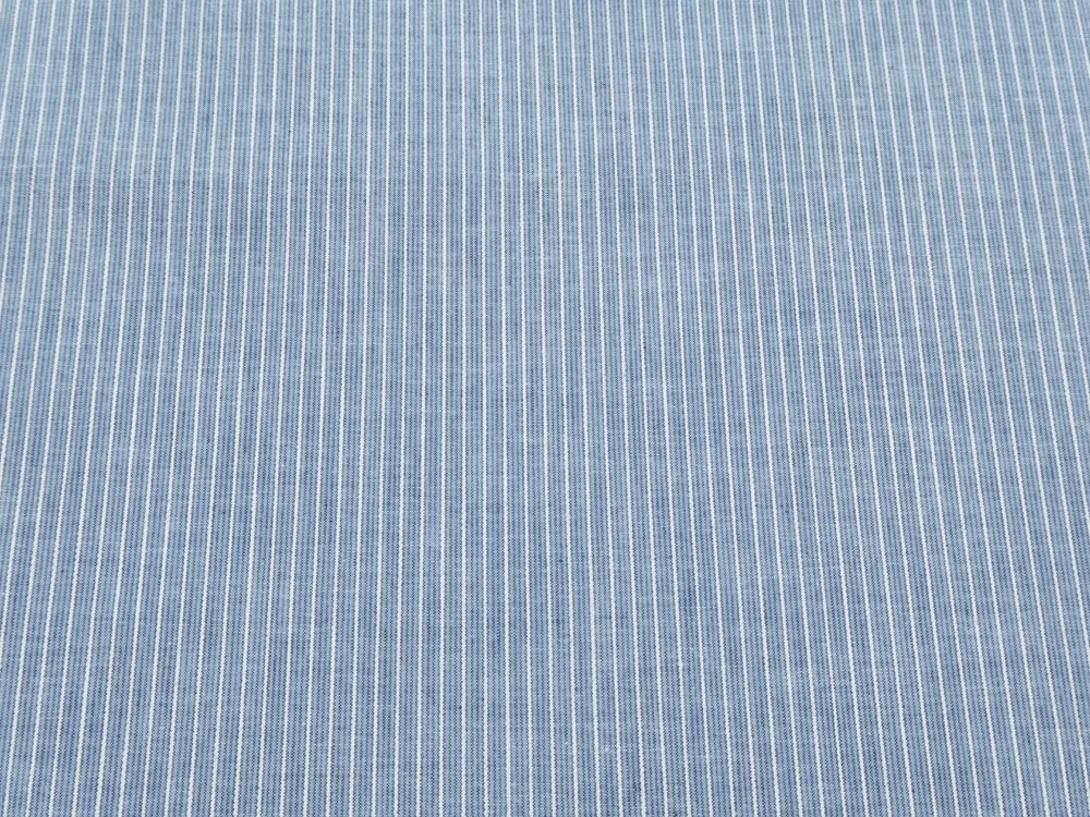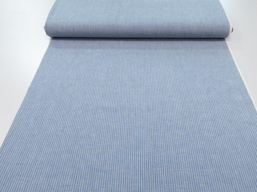 Dünne und weiche, hellblau-weiss melierte Baumwolle mit 0.5 mm breiten, weissen Längsstreifen
