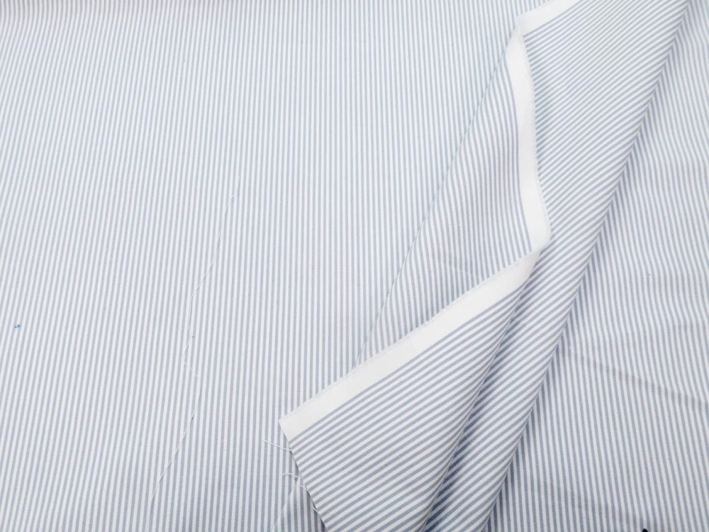 Fester, robuster, garngefärbter Baumwollstoff (305gr/m2) mit Längstreifen in hellgraublau (2mm) und weiss (3mm), idealer Dekostoff , da hohe Scheuerbeständigkeit (30’000 Martindale)