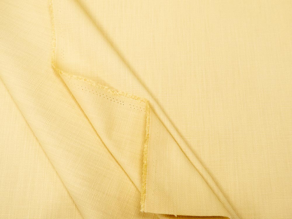 Sehr Robuster, dicker, grob gewobener, pastellgelber Canvas. Hohe Scheuerbeständigkeit, idealer Dekorationsstoffe