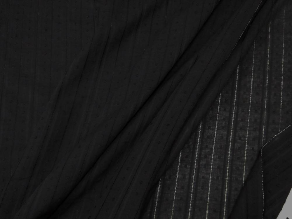 Ein sehr leichter (68gr/m2), luftig weicher Baumwollscherli, der durch seine zarte Erscheinung überzeugt. Der edle Voile wir durch die kleinen gewobenen Punkte und die durchbrochenen Längstreifen zu einem echten Hingucker.