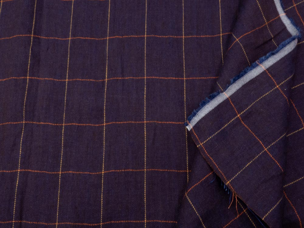 Stoff Edelleinen GrossKaro uni purplevelvet orange gelb