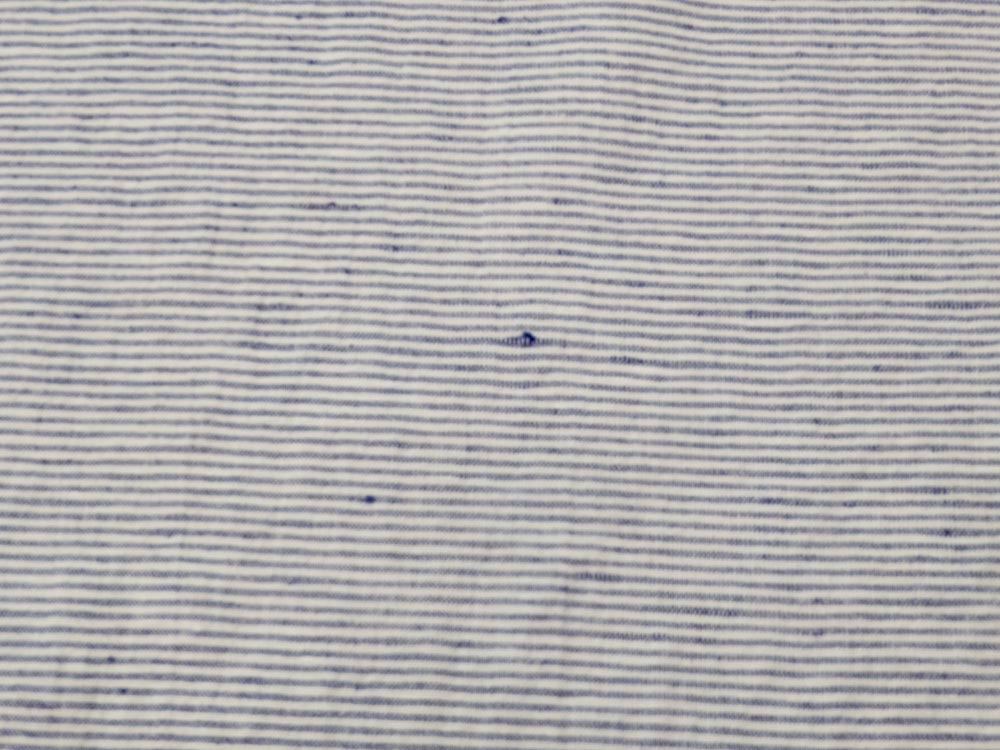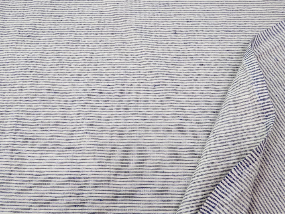 Vorgewaschenes, garngefärbtes Leinengemisch (180gr/m2) von Mechant and Mills. Die schmalen Querstreifen (weiss und blau) sind 2mm breit. Diese Leine ist aus Osteuropa und wird unter fairen Bedingungen hergestellt.