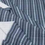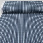 Superweicher, mittelschwerer Flannell von Art Gallery, bedruckt mit Längsstreifen in graublau, dunkelblau, weiss und hellblaugrau, ideal für eine schöne und warme Pyjamahose für den Winter