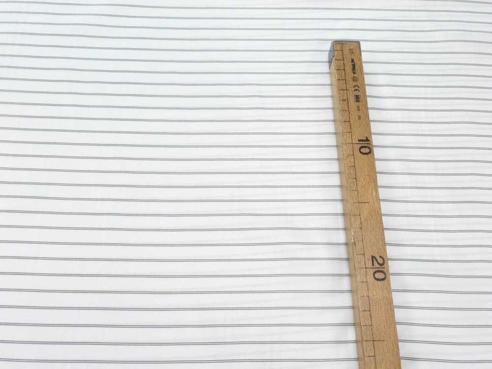 Dünner und fester, weisser Futterstoff mit 1mm breiten, schwarzen Querstreifen, ideal für Futter von Jacket-Ärmel