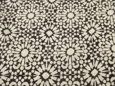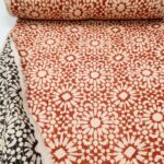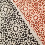 Ein markanter Bagru-Blockprint mit schwarzer Vorderseite und roter Rückseite. Bagru, ein kleines Dorf in Rajasthan, etwa 35 Kilometer von Jaipur entfernt, ist bekannt für seine traditionelle Hand-Blockdruckkunst mit natürlichen Farben und klassischen Techniken. Im Vergleich zu den farbenfrohen und detailreichen Sanganer-Prints sind Bagru-Drucke meist schlichter und auf wenige Farben reduziert.