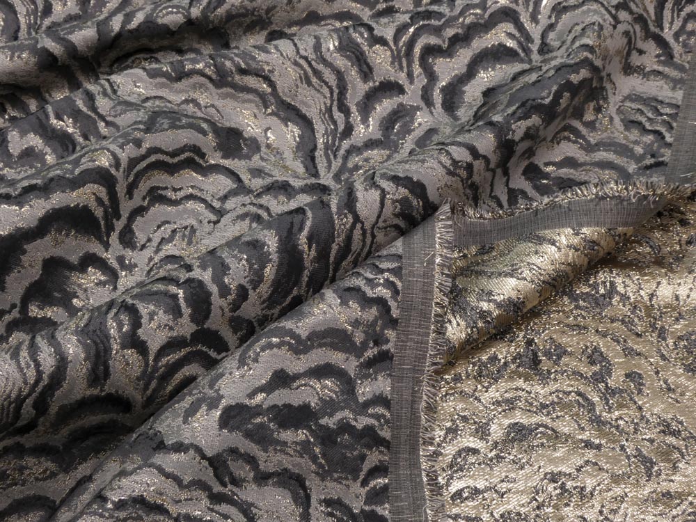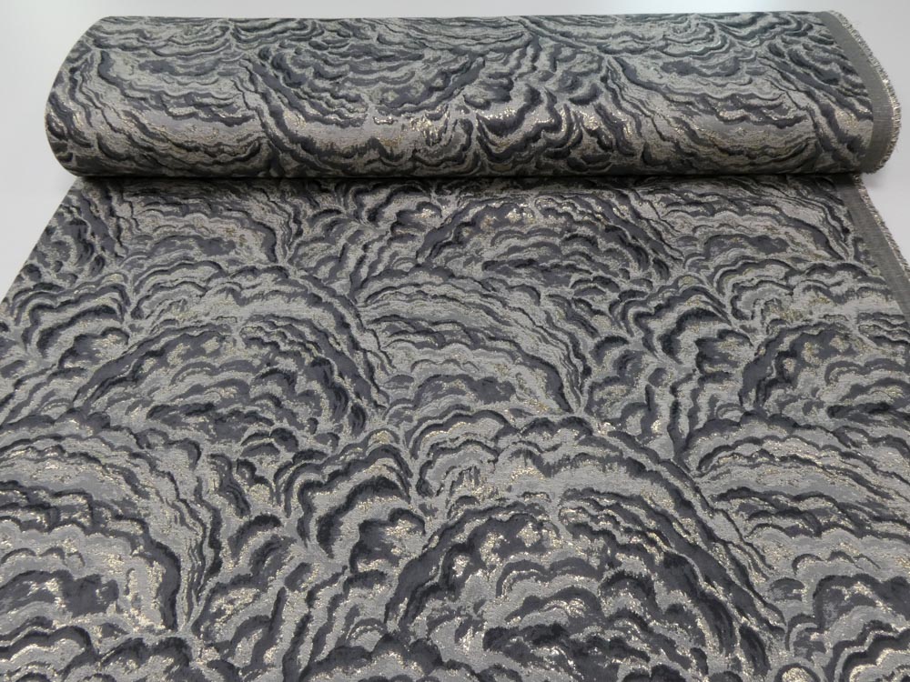 Dieser opulente, dünne (208gr/m2) Jacquard, der auf Lateinisch Licht bedeutet, wird von metallischen Welle durchzogen. Das in sanften Spitzen gewellte Design bildet eine versteinerte Textur mit einer erdigen Qualität, das durch den üppigen Jacquard-Stoff hervorgehoben wird.