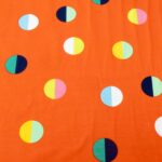 Dünner (200gr/m2), weicher und elastischer Baumwolljersey mit 3.5cm grossen Punkten, die wie Kinderrassel aussehen