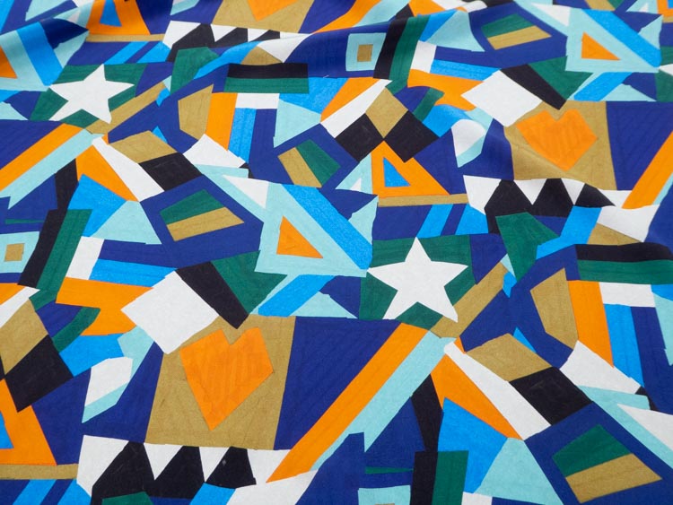 Stoff Kensington Crepe de Chine Lexie – orangeblau geo