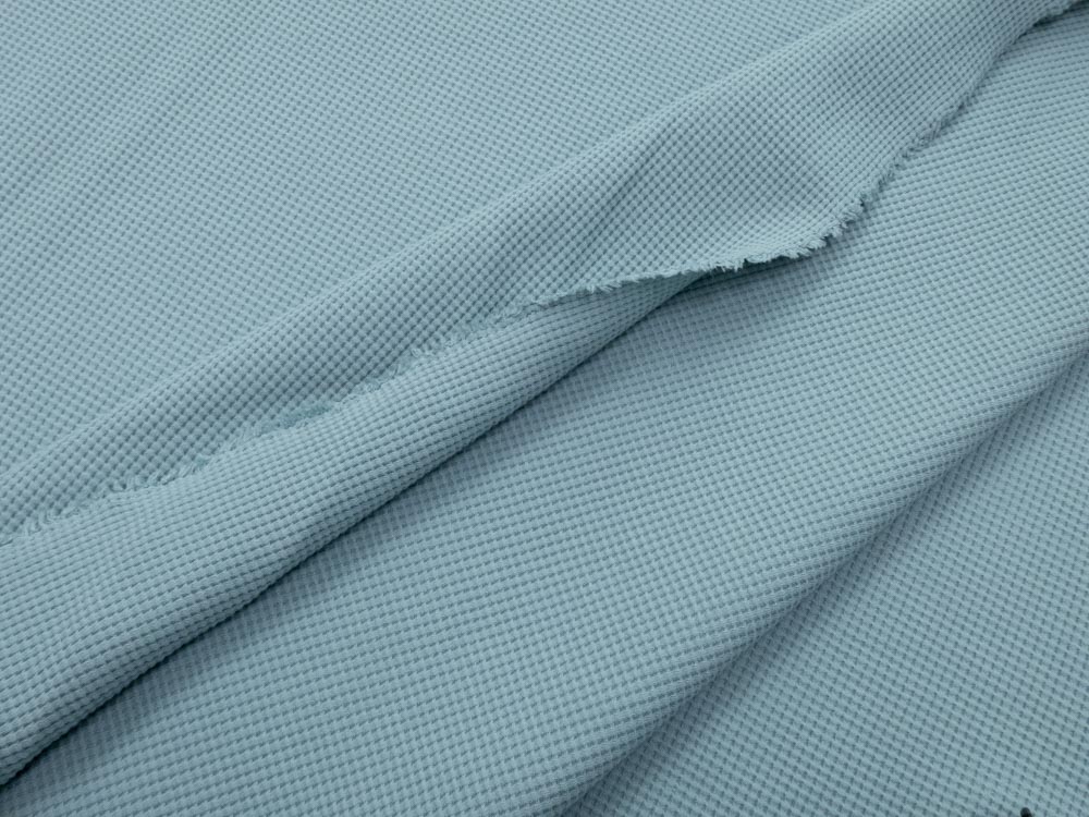 Doppel gestrickter, elastischer, weicher, mittelschwerer (300gr/m2) Baumwoll-Jersey mit einer dreidimensionalen, waffelförmigen, groben Oberflächenstruktur.