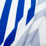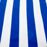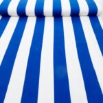 Düpnner und fester, weisser Baumwollköper bedruckt mit blauen Querstreifen (6.5cm)