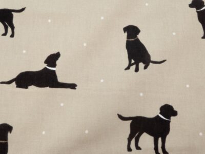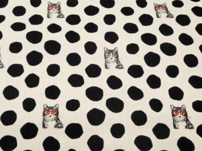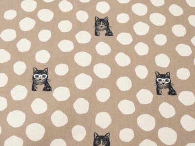 Robuster, dicker, naturfarbener Canvas mit lustigen Bären mit blauer Brille, Schal und Hut