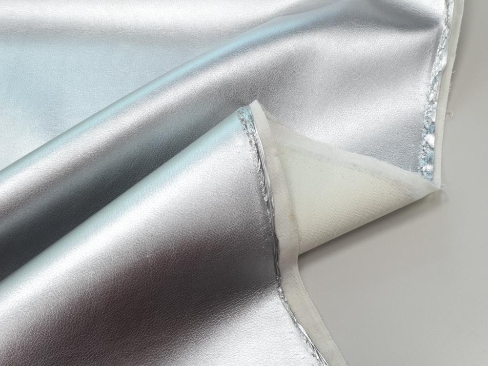 Beschichtetes, mittelschweres Lederimitat in mattglänzendem Silber mit einem Gewicht von 320 g/m². Dieser Stoff überzeugt durch seine moderne, coole Optik und eignet sich ideal für Taschen, Rucksäcke, Etuis sowie trendige Accessoires. Die Oberfläche ist leicht glänzend und wirkt besonders edel, während das Material gleichzeitig stabil und strapazierfähig bleibt.