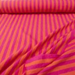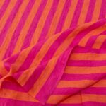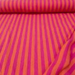 Vorgewaschenes, weiches und mittelschweres Leinengewebe mit leuchtenden, breiten Längsstreifen (garngefärbt-2cm breit) in leuchtendem Neonorange und Pink.