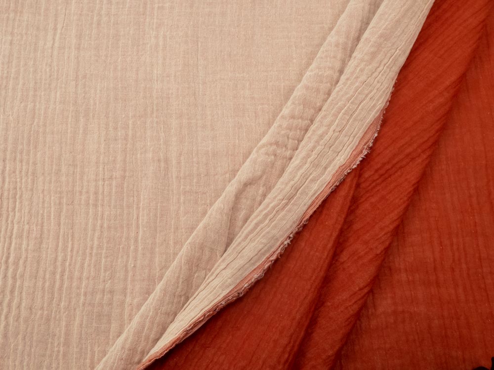 Zweifrbiges, dünnes, gekrinkeltes Doppelgewebe aus Baumwolle, auch Nuschistoff oder Mousseline genannt.
