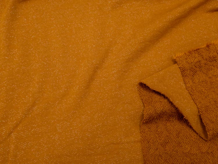 Sehr weicher, dicker, currygelb melierter Sommersweat (330gr/m2) in Überbreite