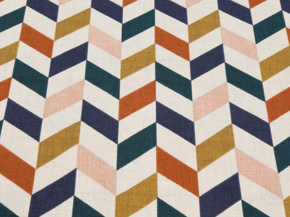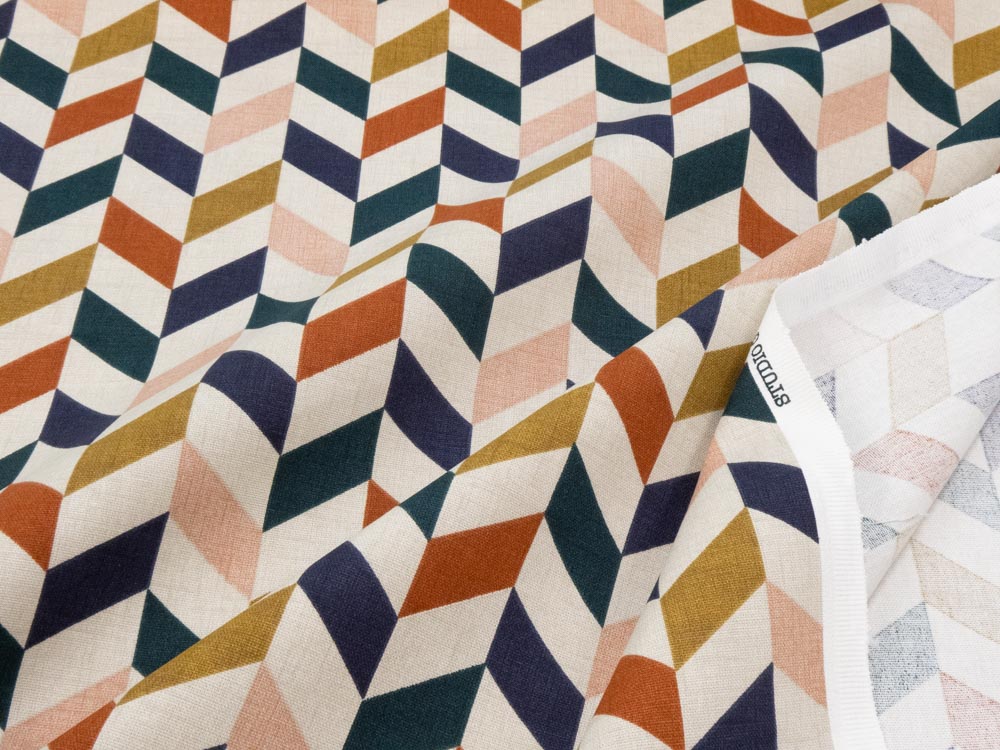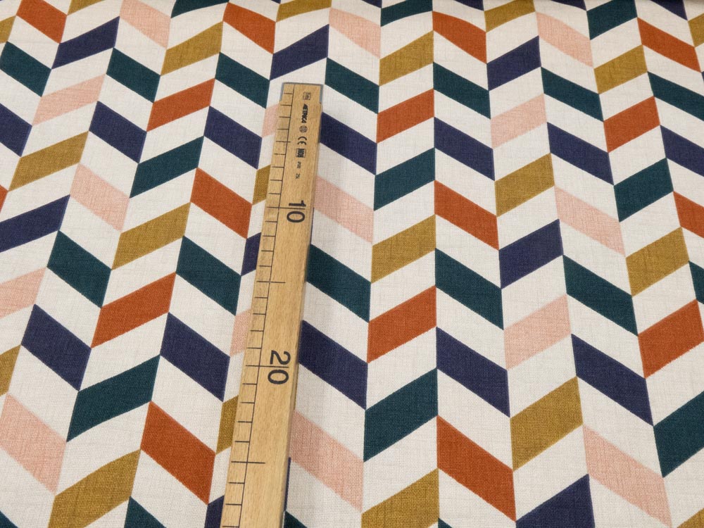 Mittelschwerer und fester Panama-Canvas bedruckt mit wunderbarem Retromuster, Idealer Dekorationsstoff (Martindale-Test 20’000 Reiben ohne Fadenbrüche)